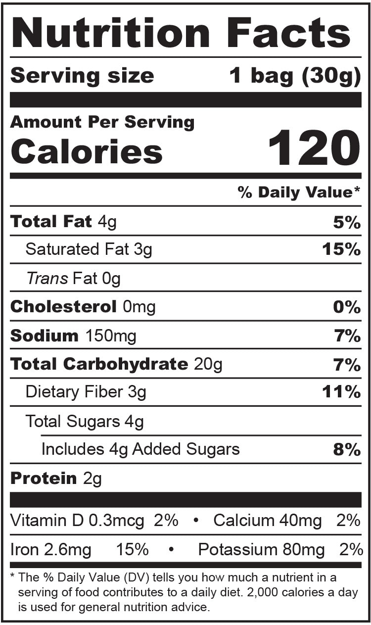 RICE PILLOWS (WHOLE GRAIN RICE, RICE, SUGAR, SALT, MOLASSES. VITAMIN E (MIXED TOCOPHEROLS) ADDED TO PRESERVE FRESHNESS. VITAMINS & MINERALS CALCIUM CARBONATE, IRON AND ZINC (MINERAL NUTRIENTS), VITAMIN C (SODIUM ASCORBATE), A B VITAMIN (NIACINAMIDE), VITAMIN B2 (RIBOFLAVIN), VITAMIN B6 (PYRIDOXINE HYDROCHLORIDE), VITAMIN B1 (THIAMIN MONONITRATE), VITAMIN A (PALMITATE), A B VITAMIN (FOLIC ACID), VITAMIN B12, VITAMIN D3), PUFFED WHOLE CORN, PRETZELS (CASSAVA FLOUR, POTATO STARCH, CHICKPEA FLOUR, HIGH OLEIC SUNFLOWER OIL, TAPIOCA STARCH, SALT, DATE SYRUP, YEAST, SUNFLOWER LECITHIN), COCONUT OIL, QUINOA, PREBIOTIC CORN FIBER, BROWN SUGAR, MAPLE SUGAR, ACACIA FIBER, ALKALIZED COCOA POWDER, NATURAL FLAVOR, SEA SALT, ROSEMARY EXTRACT(SUNFLOWER OIL, ROSEMARY EXTRACT).