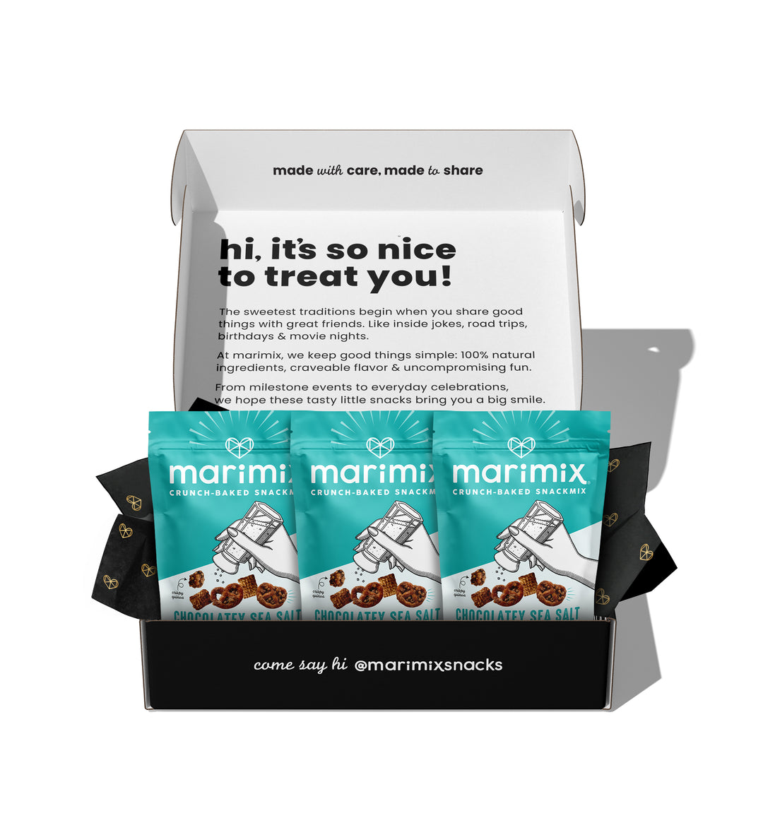 Your lucky recipients receive a memorable experience, hand-packed with pride. All Marimix gifting presentations arrive in our signature gift box, with your products of choice nestled in luxe tissue paper. The crowning touch: a premium notecard with your personal message.
