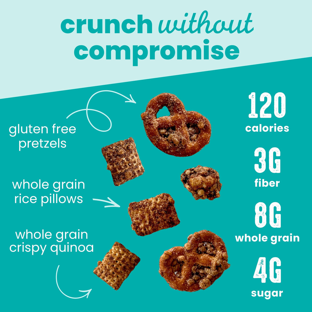 Chocolatey Sea Salt features party-ready petite pretzels, crisp rice pillows & golden puffed corn, all hugged in swirls of rich cocoa & vanilla. We bake each bite to a craveable crunch, brimming with bittersweet chocolatey flavor & kissed with sparkling sea salt. To finish: a sprinkle of quinoa & big scoops of love.