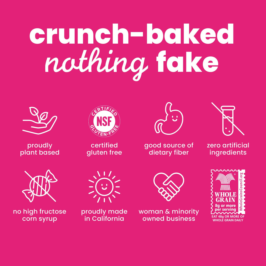 Rich swirls of aromatic Korintje cinnamon and pure vanilla are kissed with organic maple sugar for an irresistibly sweet & spicy treat. With party-ready petite pretzels, whole-grain pillows & a crisp confetti of golden quinoa. Every batch is baked to a big, craveable crunch & showered with love.