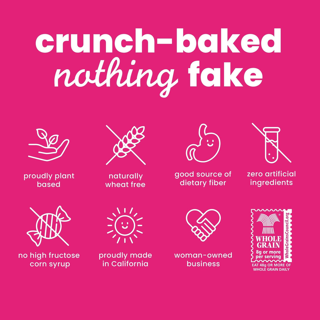 Rich swirls of aromatic Korintje cinnamon and pure vanilla are kissed with organic maple sugar for an irresistibly sweet & spicy treat. With party-ready petite pretzels, whole-grain pillows & a crisp confetti of golden quinoa. Every batch is baked to a big, craveable crunch & showered with love.