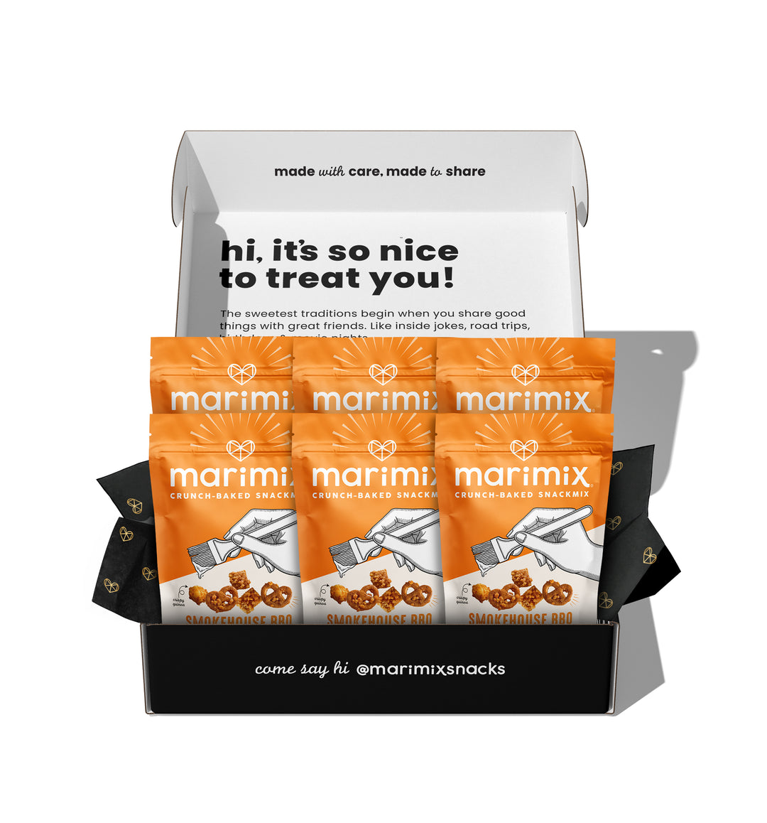 Your lucky recipients receive a memorable experience, hand-packed with pride. All Marimix gifting presentations arrive in our signature gift box, with your products of choice nestled in luxe tissue paper. The crowning touch: a premium notecard with your personal message.